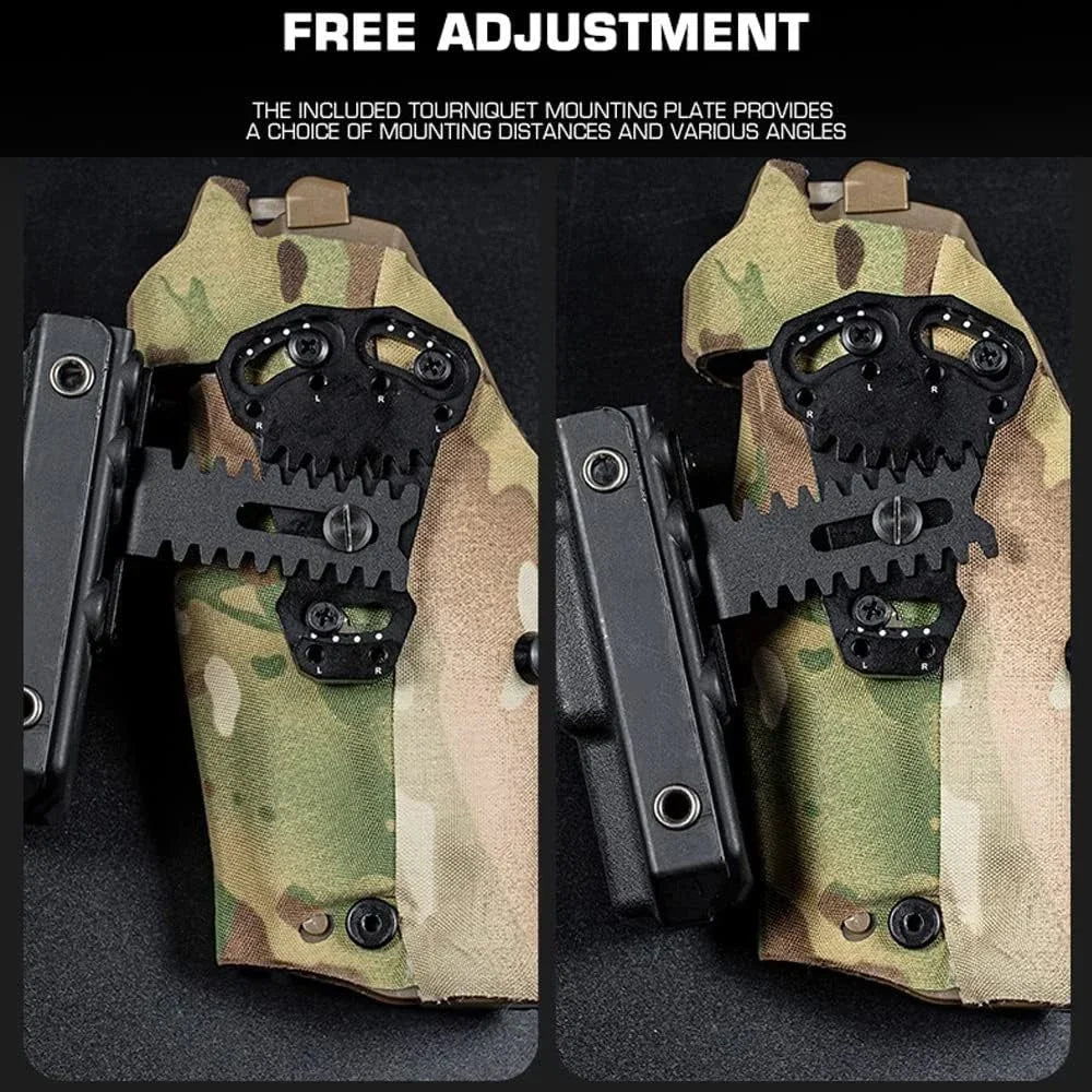 - Intégration d'accessoires : ajoutez facilement un garrot ou d'autres accessoires essentiels sur la face avant de votre étui, en les gardant accessibles à deux mains.