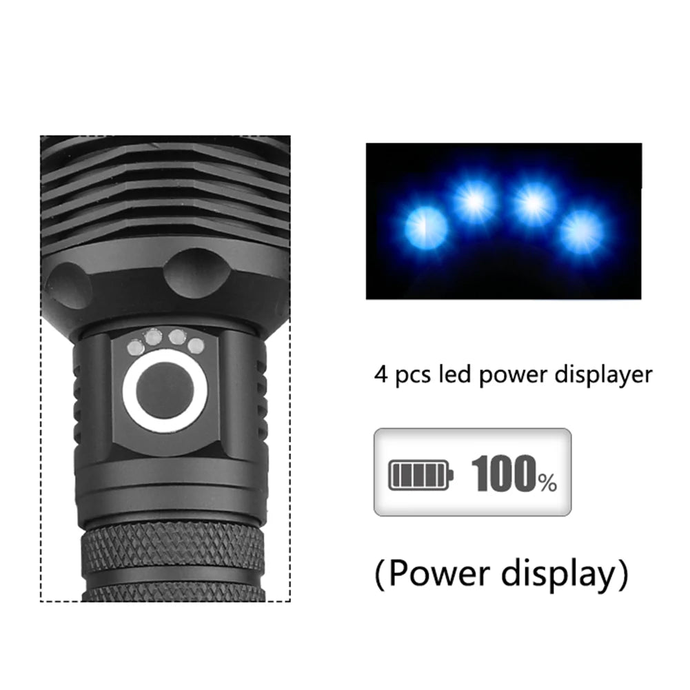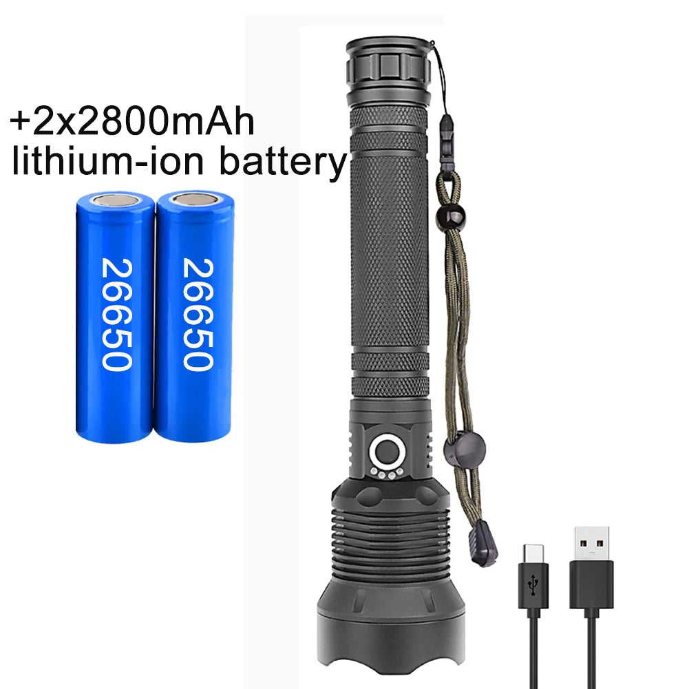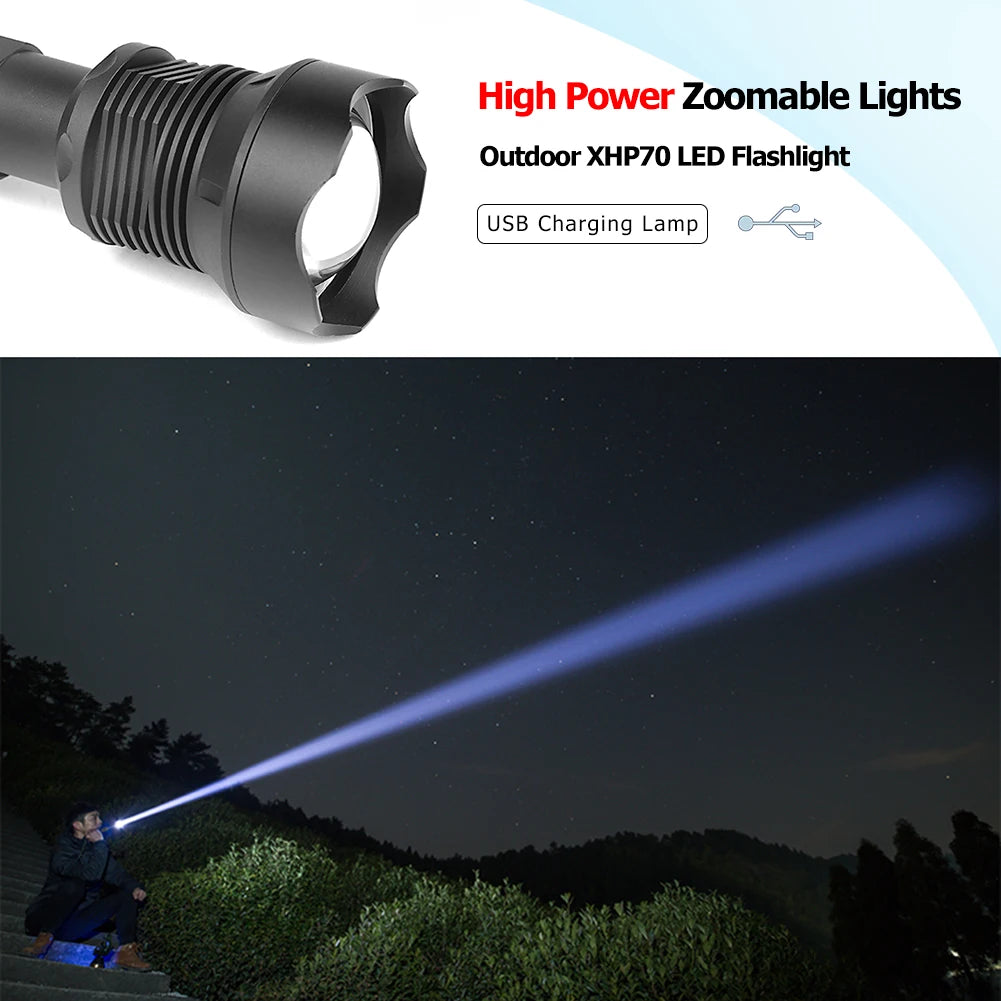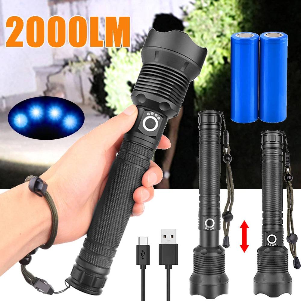 2000LM Torch Light USB Rechargeable Portable XHP70 LED Flashlight 3 Modes IPX4 Waterproof Super Bright Outdoor Camping Lighting
