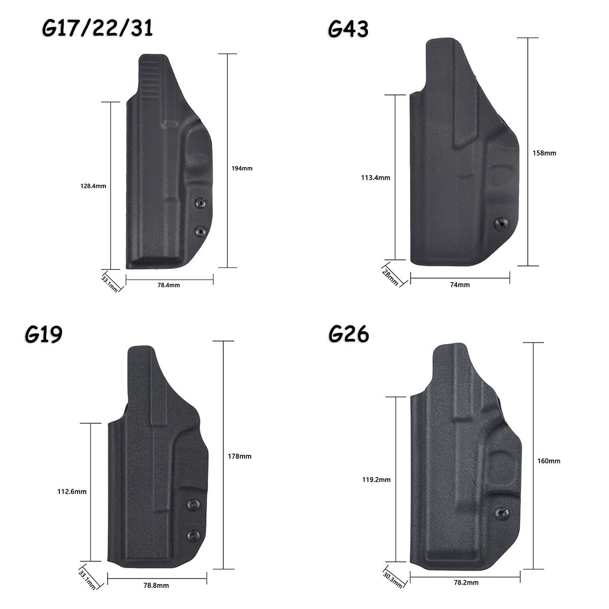 Suitable for: Glock17/19/22/26/31/43